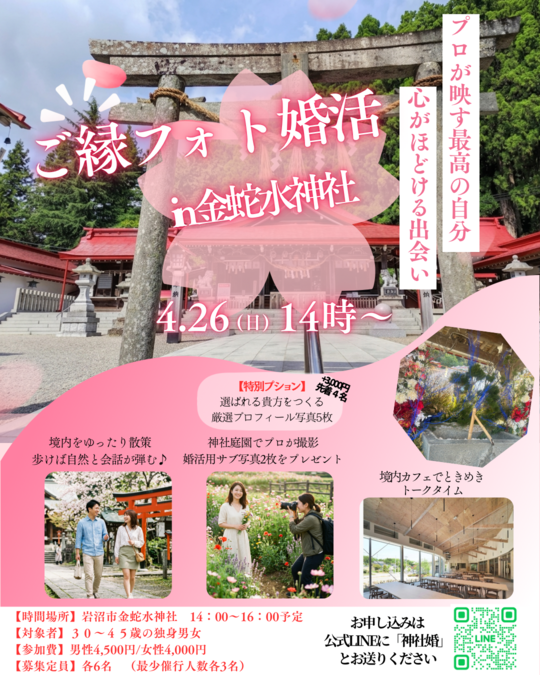 「神社好き」という共通点がなくても開運&金運&仕事運を開運の波に乗って運気も上昇させちゃいましょう! 開放的な春の境内で、心も体もリフレッシュ!あなたの素敵なご縁の「きっかけ」を、私たちが全力でお手伝いします。